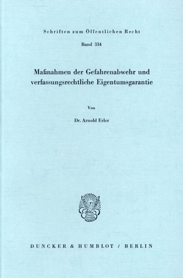 Maßnahmen der Gefahrenabwehr und verfassungsrechtliche Eigentumsgarantie (Schriften zum Öffentlichen Recht, Bd. 334) '77
