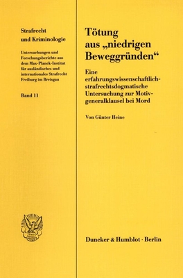 Tötung aus "niedrigen Beweggründen" (Strafrecht und Kriminologie, Vol. 11)