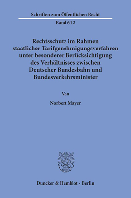 Rechtsschutz im Rahmen staatlicher Tarifgenehmigungsverfahren, (Schriften zum Öffentlichen Recht, Bd. 612)