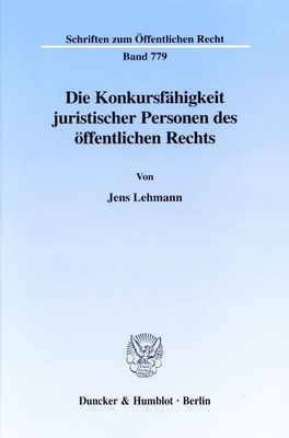 Die Konkursfähigkeit juristischer Personen des öffentlichen Rechts.(Schriften zum Öffentlichen Recht 779) Kt. 195 S.