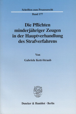 Die Pflichten minderjähriger Zeugen in der Hauptverhandlung des Strafverfahrens (Schriften zum Prozessrecht, Bd. 177) '03